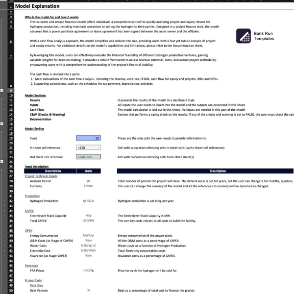 This financial model is specifically designed for individuals who want a straightforward and user-friendly approach to analyze hydrogen projects. It eliminates the need for in-depth financial analysis knowledge and saves you from spending hours deciphering complex background calculations. This is the simplest model available, encompassing all the essential tools and results found in comprehensive financial models.