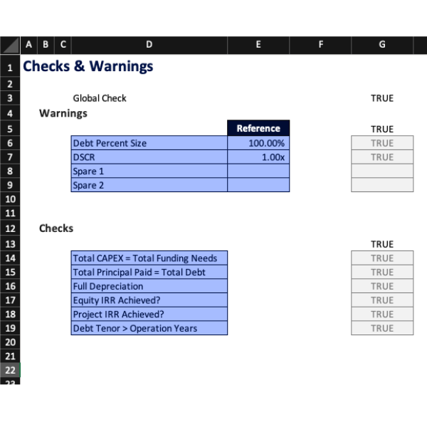 - C&W (Checks & Warnings): Sheet that performs model's sanity check.
